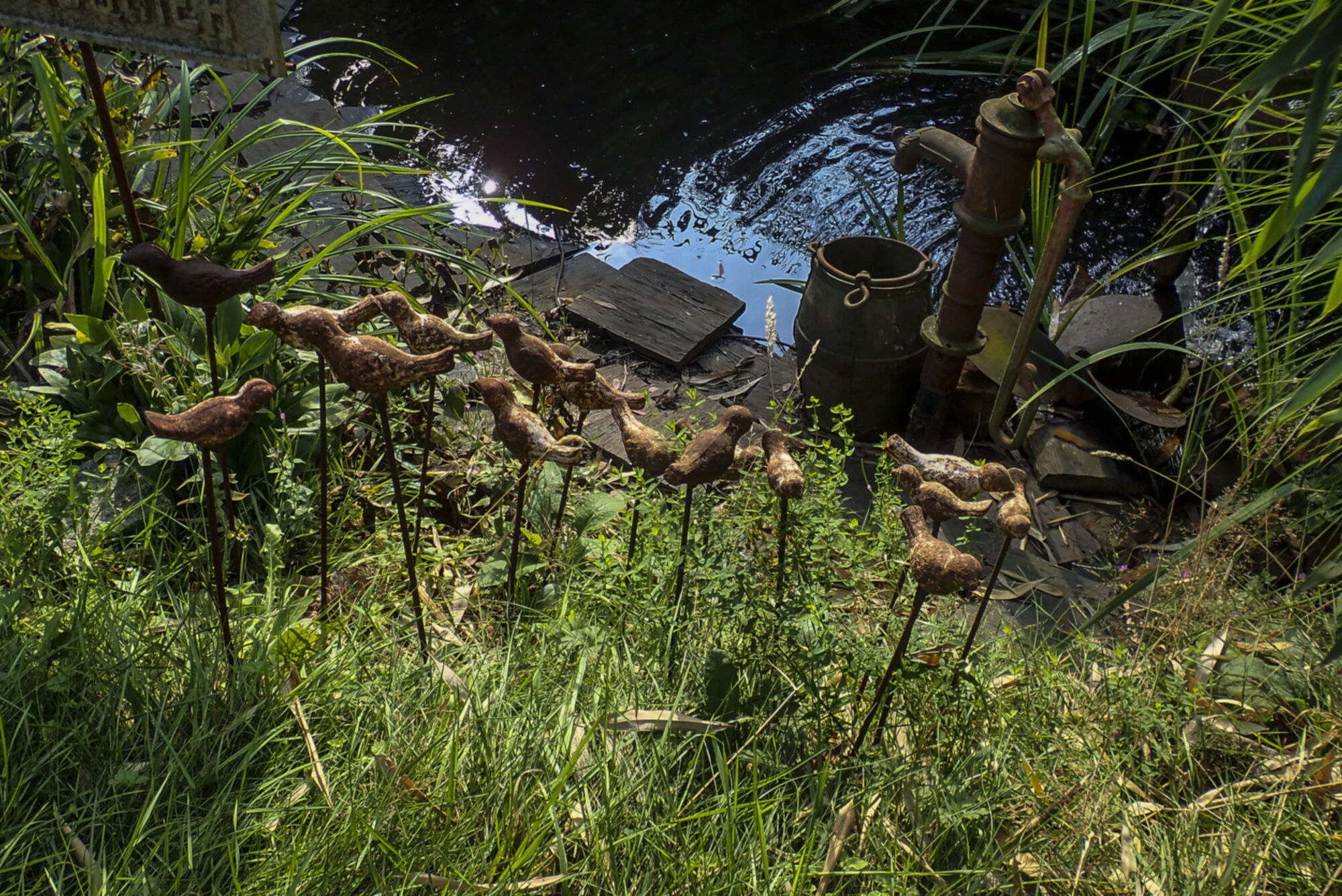 Grâce à son ami, le photographe Guy ISAAC, il découvrira ce lieu, une grange désaffectée. Au fil des années, il transformera cet endroit pour en faire un jardin et un atelier à son image.
